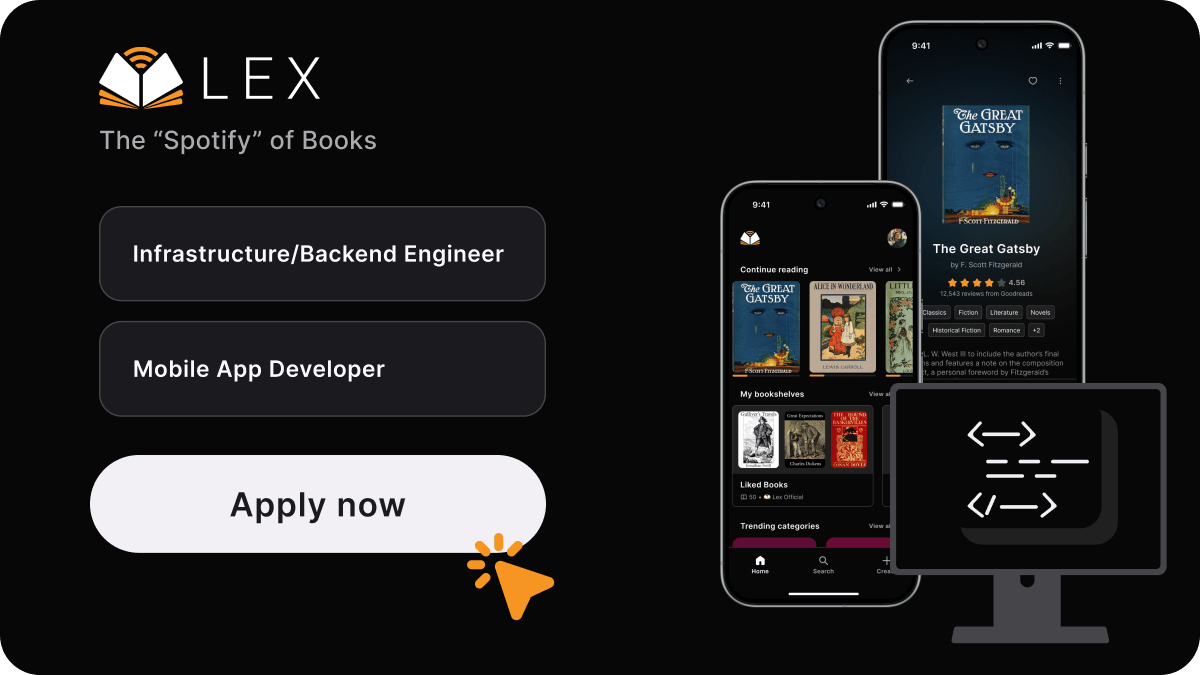 At Lex, our mission is to build the "Spotify" of books. We envision a world where the vast majority of ebooks and audiobooks are free.